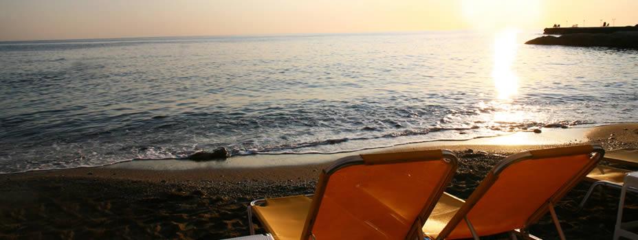 Sitting on our terrace café, the guest has an astonishing view of the picturesque little port of Hersonissos on the one hand and the eastern sea on the other. You will be fascinated watching the sun rising early in the morning from the sea and diving back into it in the evening giving the sky a unique colors bouquet.