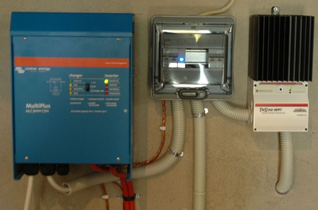 Συνδέεται στον συσσωρευτή και μετατρέπει το ρεύμα από 12V, 24V, 48V … σε μονοφασικό 230VAC ή τριφασικό 400VAC για κάθε χρήση. Η ισχύς του μετατροπέα εξαρτάται από την ισχύ των συσκευών που θα τροφοδοτούνται. Συνήθως επιλέγουμε μεγαλύτερης ισχύος μετατροπέα όταν στην κατανάλωση υπάρχουν μοτέρ με υψηλά ρεύματα εκκίνησης.